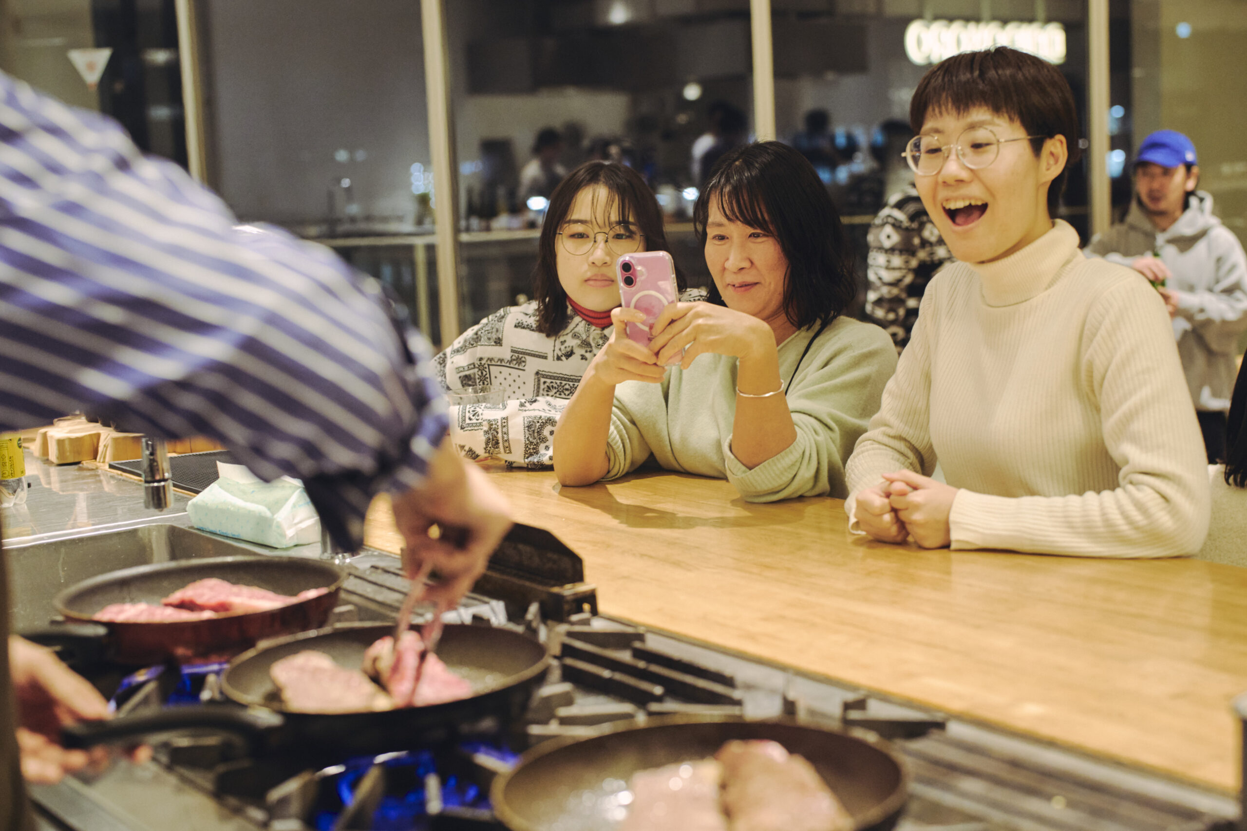 目の前で仕上がる料理を囲みながら、